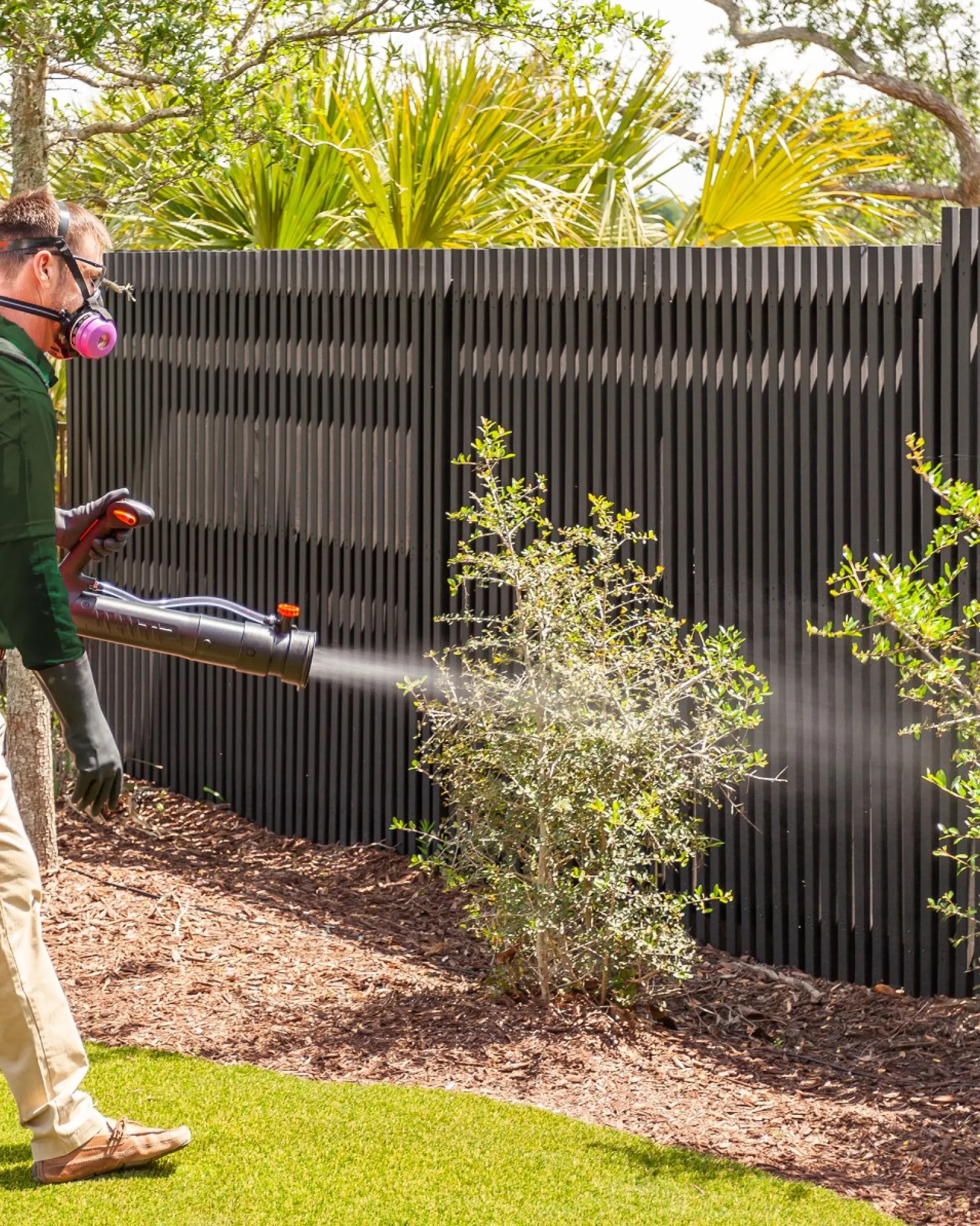 Apply professional power mist blower treatments to dense shrubbery, tall grass, tree lines, and under decks and porches.